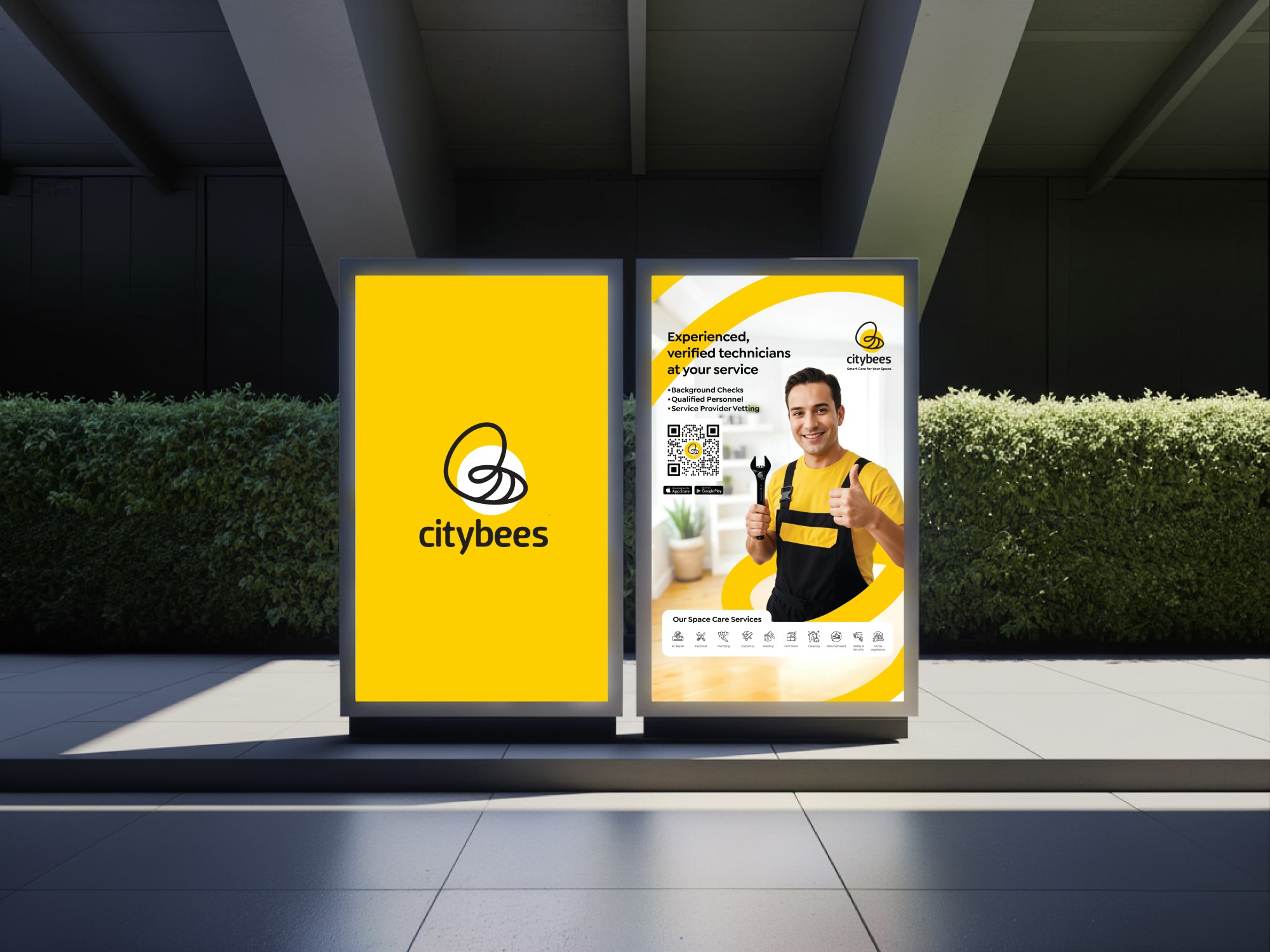 We didn't just build a brand - we architected a market entry. From website design that made complex PropTech simple to understand, to launch collaterals that spoke differently to homeowners versus service providers, to outdoor hoardings that had to work in a multilingual, high-distraction UAE market. Our approach combined digital sophistication with on-ground impact - creating brand materials that could convince skeptical residents to trust app-based bookings while simultaneously attracting quality service partners to join the platform. The website became their conversion engine, the launch materials their credibility builder, and the outdoor presence their mass-market announcement. We positioned CityBees not as another app, but as "the smarter hive" - transforming facility management from a frustrating necessity into an effortless experience, one verified bee at a time.